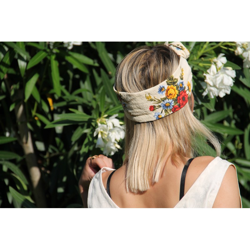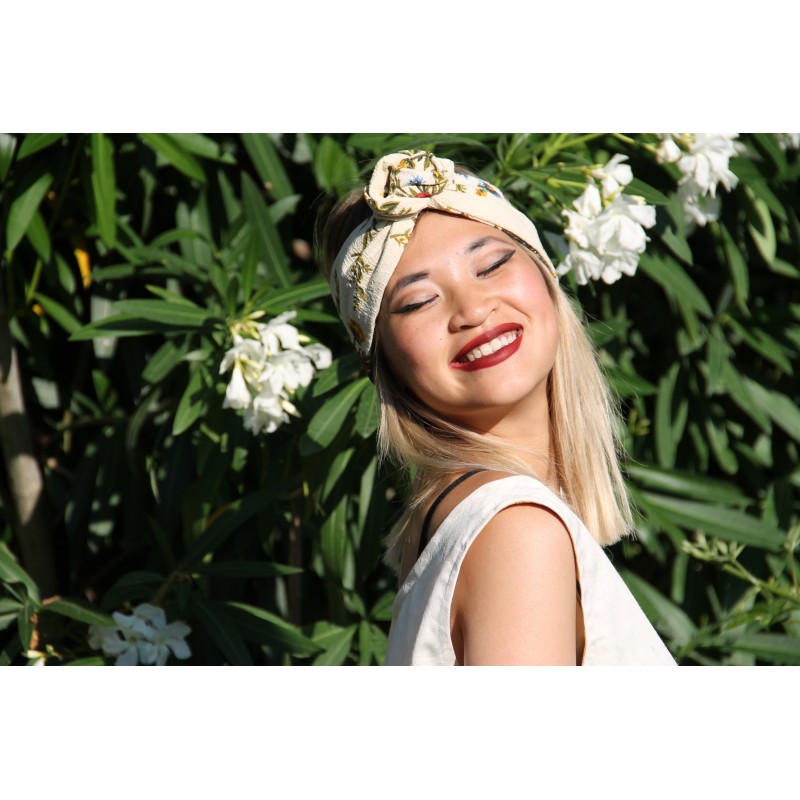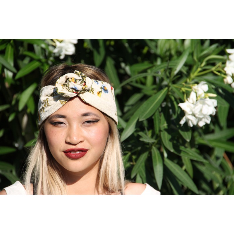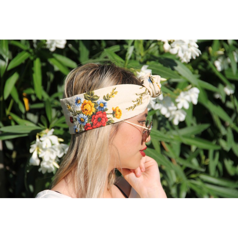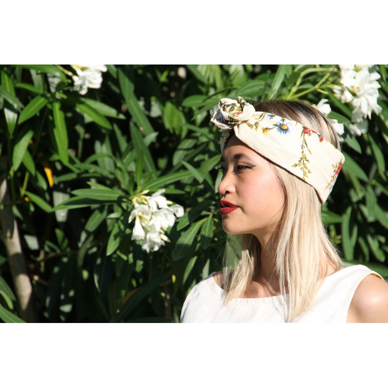 Bandeau écru à imprimé fleuri - effet tapisserie