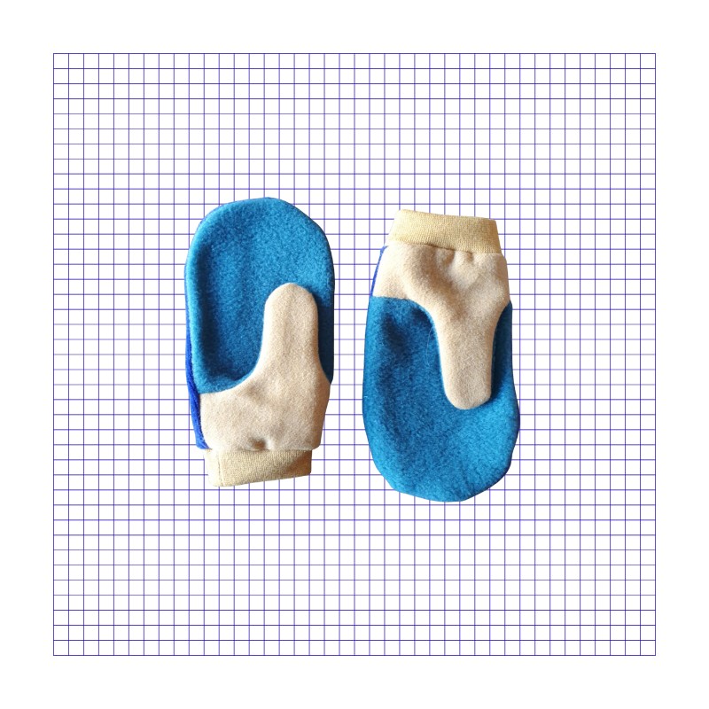 Jolie paire de petites moufles esprit color block en laine, polaire et velours.